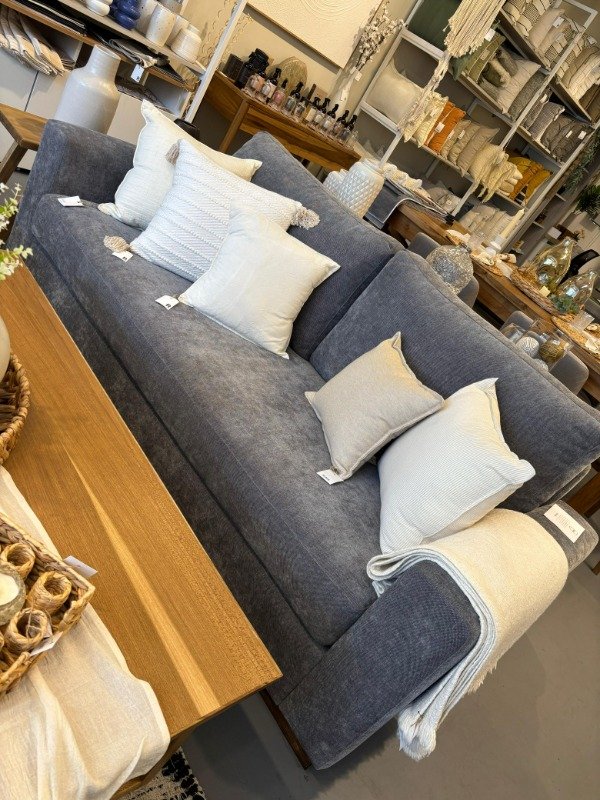 Tapizado con género CHENILLE ("Thor" tono gris oscuro) anti mancha y anti desgarro. Los almohadones contienen cierres y son 100% lavables.